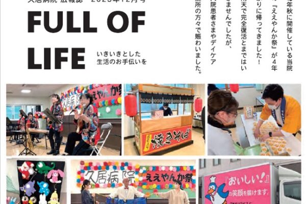 2023年12月23日 / 最終更新日時 : 2023年12月23日 hisai-hospital お知らせ 広報誌Full of Life第11号発刊 当院の広報誌『Full of Life』の第11号(2023年12月号)を当ホームページにアップいたしました。本誌を通じて様々な情報を発信し、これまで以上に地域に信頼される医療サービスを提供できればと思っております。下記 […]