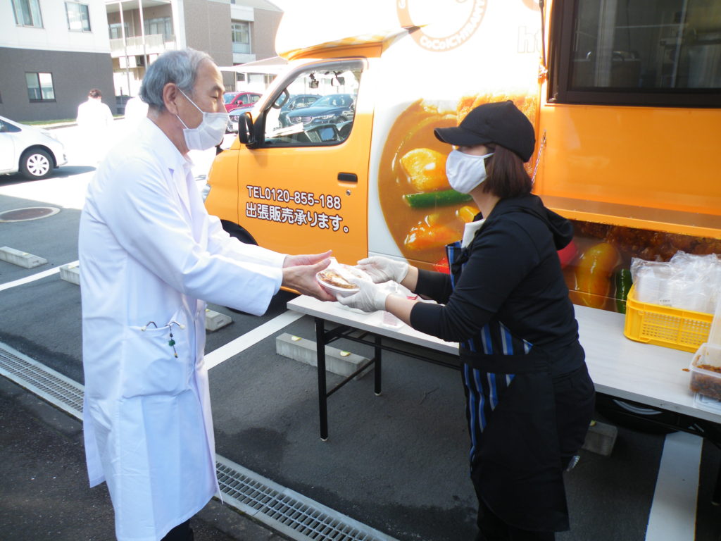 2020年10月20日 / 最終更新日時 : 2020年10月21日 hisai-hospital お知らせ CoCo壱番屋さまからカレーライスの提供をいただきました! 10/20(火)、カレーハウスCoCo壱番屋を展開する株式会社壱番屋さまより、カレーライスの昼食を提供いただきました。 新型コロナ禍で医療に従事するスタッフにエールを送るためにと、当日はキッチンカーでご来院いただき、ツナやコーン、チーズをトッピングした特製のカレーライスを当院のスタッフに手渡していただきました。 温かいお心遣いに深く感謝いたします。株式会社壱番屋さま、どうもありがとうございました! なお、株式会社おやつカンパニーさま、アツミメガネさまからも励ましのお品を頂戴いたしました。この場をお借りしてお礼を申し上げます。 久居病院(Hisai hospital) FacebookXBlueskyCopy