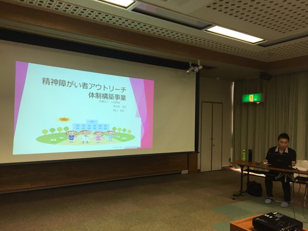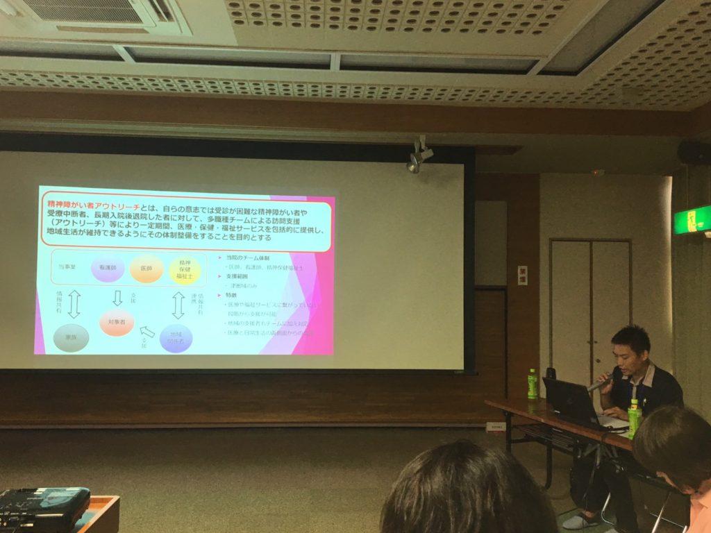 2019年8月22日 / 最終更新日時 : 2019年9月2日 hisai-hospital お知らせ 「津市の高齢者の生活を考える研究会」にて当院のアウトリーチ事業の紹介を行いました 8/22(木) 津市北部市民センター大会議室において、「第3回 津市の高齢者の生活を考える研究会」が開催されました。本会議は津中部中地域包括支援センター(運営:みえ医療福祉生活協同組合)が主催する研究会です。 今回は地域のケアマネージャの方を対象に、当院で行う『精神科障がい者アウトリーチ事業』の概要と取り組み事例を紹介させていただき、地域を支援する一つの資源であることをご理解いただけたものと感じました。 本事業は、自らの意思では受診が困難な精神障がい者や受療中断者、長期入院後の退院した方々に対して、多職種による訪問支援により、医療・保健・福祉サービスを包括的に提供し、地域生活が維持できるように支援することを目的としています。 三重県から委託を受けた事業であり、当院では津圏域を担当しております。本事業に関するお問合せや相談については、059-255-2986(久居病院 代表電話)までお願いいたします。 ■久居病院ホームページ アウトリーチ構築事業紹介ページ https://hisai-hospital.or.jp/surpportfacility/medicalsupport/outreach/ 久居病院(Hisai hospital) FacebookXBlueskyCopy