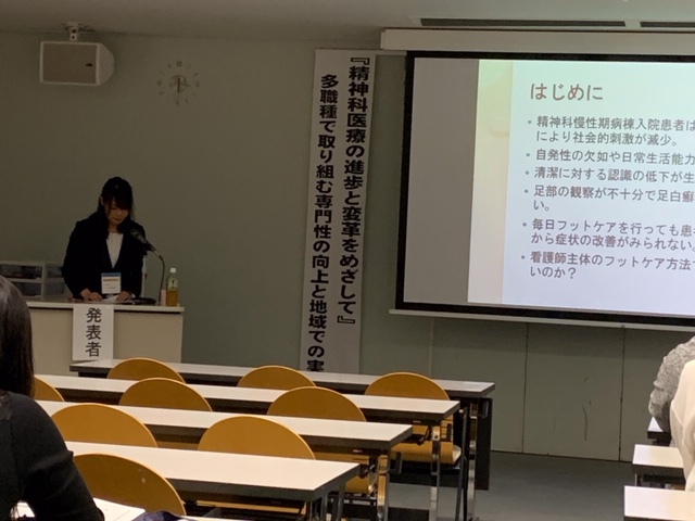 2019年10月25日 / 最終更新日時 : 2019年11月7日 hisai-hospital イベント情報 第10回三重精神科医療フォーラム 参加報告 10/25(金)に三重県総合文化センターで行われた、三重県精神科医療フォーラムにて、当院の看護師が研究発表を行いました。 【今回報告テーマ】・嚥下訓練・口腔ケアを通したQOL向上への取り組み ・身体合併症学習会後の精神科看護師の気付き ・長期精神科入院患者のフットケアに対する行動・認識の変化~リーフレットを用いた患者教育を通して~ 久居病院(Hisai hospital) FacebookXBlueskyCopy